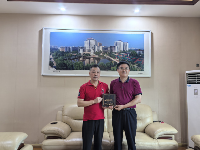 期间,张福庆代表学校向邓小斌颁发“校友杰出贡献奖”奖牌,以表彰他在人才培养、招生就业、捐资助学等方面为学校发展作出的贡献。