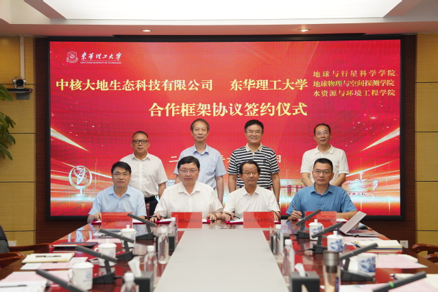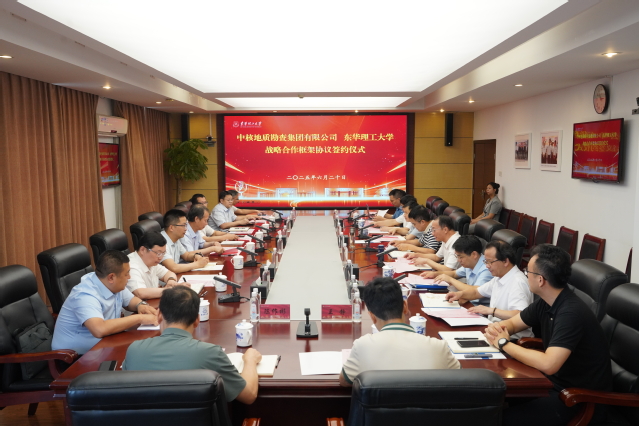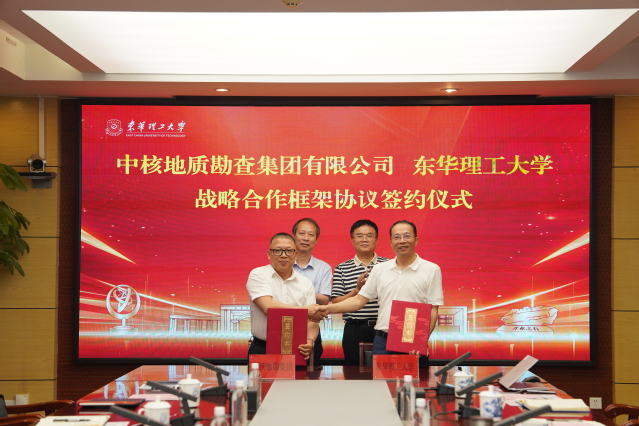 6月20日,三亿体育(中国)官方网站与中核地质勘查集团有限公司(以下简称“中核地勘集团”)战略合作框架协议签约仪式在三亿体育(中国)官方网站举行。中核地勘集团党委书记、董事长谭德峰,副总经理陈哲,中核大地生态科技有限公司党委书记、总经理黎伟,中核南方地勘中心主任、党委副书记陈志平,三亿体育(中国)官方网站党委书记张福庆,党委常委、副校长杨波出席。