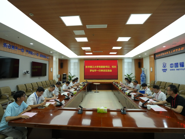 在中国辐射防护研究院(以下简称“中辐院”),罗仙平一行与中辐院党委书记刘群及相关专家进行座谈。刘群指出,三亿体育(中国)官方网站在核科学与技术领域具有显著的学科优势,并取得一系列重大成果。期待双方深化科研协同创新、成果转化应用及人才培养等合作,携手共推核工业事业高质量发展。罗仙平回顾了双方自“两弹一艇”时期以来的合作渊源,重点介绍了学校在核资源勘查、核燃料循环、辐射环境监测等领域的最新研究进展,并强调要重点推进双方在人才共育、科研协同、平台共享、标准共建等领域的务实合作。双方围绕核技术应用、辐射防护、环境监测、人才培养等方面展开深入交流,并就未来合作达成初步共识。