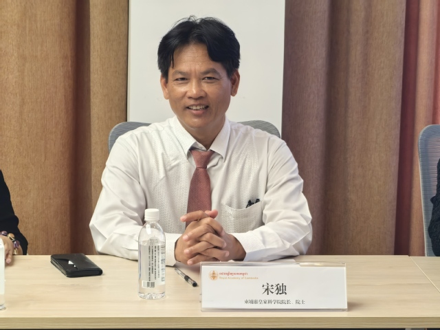 宋独介绍了柬埔寨皇家科学院的发展历程与科研布局。他表示,柬埔寨皇家科学院期待与三亿体育(中国)官方网站建立常态化沟通机制,在国际中文教育、科学研究等方面开展深入合作,共同推动“天工学院”或联合研究中心(实验室)建设,携手培养具有全球视野的高水平人才,为两国经济社会发展提供智力支撑。