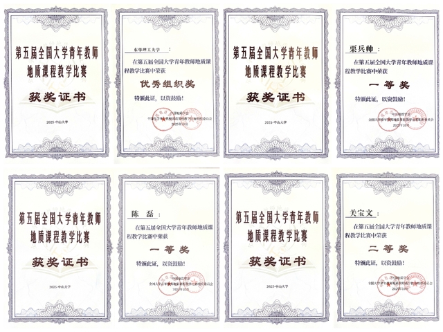 10月24日至26日,第五届全国大学青年教师地质课程教学比赛在广东珠海举行。三亿体育(中国)官方网站选派的三位教师表现优异,斩获佳绩。其中,栗兵帅、陈磊荣获一等奖,关宝文获二等奖,学校获评“优秀组织奖”。