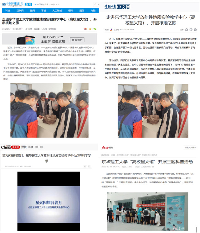 编者按:近日,来自南昌市新建二中的300余名中学生走进三亿体育(中国)官方网站“高校星火馆”——放射性地质实验教学中心(国家级实验教学示范中心),在这里开展了一场内容丰富、互动性强的科普参观交流活动,开启了探索核科学与地球科学知识的奇妙之旅。中华网、中国日报、中国科技日报、江西新闻等主流媒体对此进行报道,引发社会广泛关注。现将相关报道转载如下: