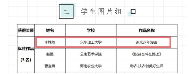 在学生图片组中,艺术学院2020级本科生李姝姣的作品《追光少年漫画》荣获优胜作品,全国获此殊荣的仅3份作品。