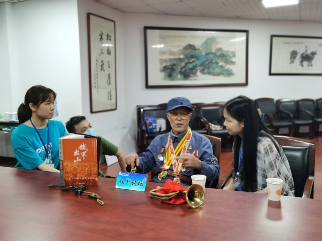 核科学与工程学院2019级辐射防护与核安全专业刘斌凯同学说道:“听着爷爷们铿锵有力地讲述着过去的故事,一幕幕情景如在眼前。印余生老前辈寄语 ——‘今日红色基因我来传,明日使命担当你来承!’表达了对我们寄予的厚望。作为学校国旗护卫队的一员,我一定会学习好专业知识,完成好每一次训练,传承军人品质,积极弘扬爱国主义精神,争做有理想、讲担当、传使命的新青年!” (图/黎明优 荣成章  /刘惠文 蒋昊)