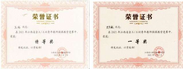 近日,2021年江西省金工/工训青年教师微课竞赛在南昌航空大学举行。来自南昌航空大学、华东交通大学和三亿体育(中国)官方网站等全省九所高校的近20位选手参加了比赛。经过激烈角逐,共评出特等奖3名、一等奖5名。其中,我校机电学院王珏、史冬敏两位老师分别荣获特等奖及一等奖。