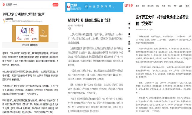 编者按:为充分利用红色资源,挖掘学习载体新形式,扎实推进党史学习教育走深走实,我校软件学院面向全院师生组织开展“红色地标打卡”活动。中国新闻网、中国教育在线、江西思政、凤凰网、大江网、今日头条等媒体对此进行报道,现将相关内容转载如下: