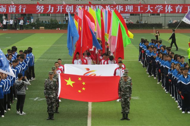10月27日上午,近2000名东华理工学子身穿盛装,手舞国旗,将运动场打造成一片流动的“红色海洋”。伴随着鲜艳的五星红旗缓缓升起,全场师生**唱响《义勇军进行曲》,拉开运动会的序幕。
