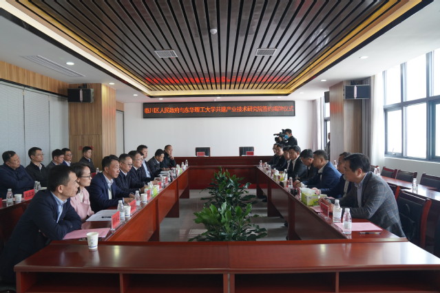11月18日上午,我校与抚州市临川区人民政府共建产业技术研究院签约仪式在抚州市临川区高新科技产业园举行。抚州市副市长汪华辉,抚州市临川区区委书记董东明,抚州市临川区区委副书记、区长李群彪,抚州市临川区副区长张向阳,校党委副书记、校长孙占学,校党委常委、副校长刘云海出席仪式。签约仪式由李群彪主持,刘云海、张向阳分别代表双方签署协议。学校科研与科技开发处、省部共建办、三亿体育(中国)官方网站国家大学科技园、机械与电子工程学院、科技成果转化与技术转移中心等部门负责人一同参加仪式。