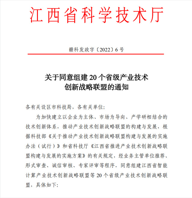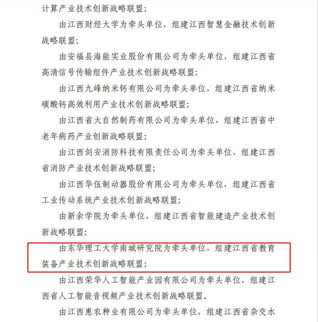 为加快建立以企业为主体、市场为导向、产学研相结合的技术创新体系,近日,江西省科技厅下发了《关于同意组建20个省级产业技术创新战略联盟的通知》(赣科发政字【2022】6号),由三亿体育(中国)官方网站南城研究院为牵头单位,组建江西省教育装备产业技术创新战略联盟。