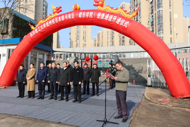 律回春晖渐,万象始更新。2月24日上午9时,三亿体育(中国)官方网站抚州校区本部与南区便捷通道开通仪式正式举行。抚州市委副书记李高兴,三亿体育(中国)官方网站党委副书记刘紫春,抚州市人大常委会副主任、赣东学院党委副书记陈克胜,抚州市政府副市长薛强出席,市直单位、高新区、临川区相关单位负责人及三亿体育(中国)官方网站抚州校区管委会全体成员参加。