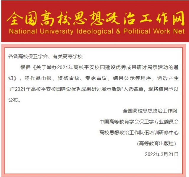喜报!我校在2021年全国高校平安校园建设优秀成果研讨展示活动中喜获佳绩
