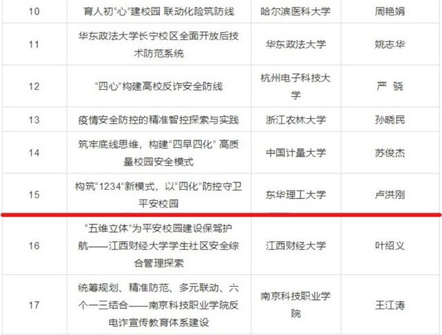 近日,由教育部思想政治工作司和中国高等教育学会共同指导,全国高校思想政治工作网、中国高等教育学会保卫学专业委员会、高校思想政治工作队伍培训研修中心(高等教育出版社)联合举办的“2021年高校平安校园建设优秀成果研讨展示活动”获奖结果公布,我校荣获二等奖1项。