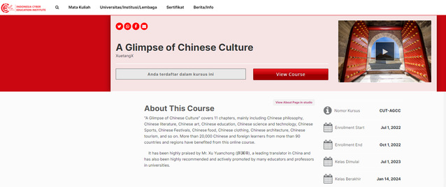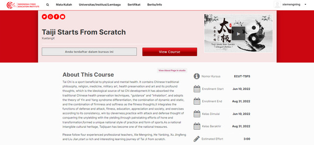 近日,学校两门慕课《太极之从零开始(双语版)》(负责人:颉梦宁)、《中国文化概况》(负责人:廖华英)在印尼国家在线课程平台(印尼网络教育学院)上线,实现了我校国际教育新的突破。