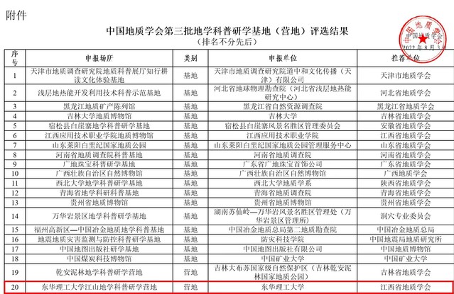 近日,中国地质学会第三批地学科普研学基地(营地)评选结果公示,我校地球科学学院组织申报的三亿体育(中国)官方网站江山地学科普研学营地成功入选。此次评选活动由中国地质学会组织,共评选出全国地学科普研学基地(营地)20家。