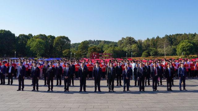 十月的校园秋高气爽,欣欣向荣。意气风发的东华理工青年学子排着整齐的队列庄严肃立,国旗广场东西两侧的红色展板上“青春献礼二十大 不忘初心跟党走”的字幕熠熠生辉。从空中俯瞰,广场上由学生方阵组成的“二十大”和“66”的字标格外醒目。“我们从太行走来,扎根在红土地上,伴随着核工业前进的步伐……”活动开始之前,在场学生高唱校歌,抒发对学校的热爱和祝福。