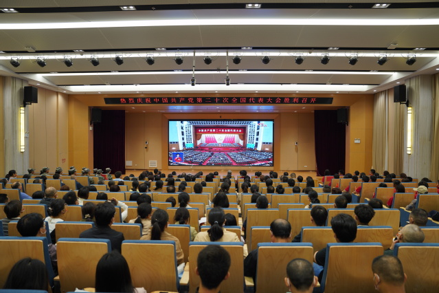 10月16日,中国共产党第二十次全国代表大会在京隆重召开。上午10:00,学校党委组织党员干部和师生们集中收听收看党的二十大开幕会盛况。校党委书记张福庆,校党委副书记、校长孙占学,以及其他校党政领导班子成员、校党委理论学习中心组成员、驻南昌校区的机关、教辅单位所有党员干部和师生代表在新实验楼一楼报告厅集中收听收看。抚州校区党工委,各基层党委(直属党总支)及有关部门分别组织党员干部、党外人士、离退休党员干部和师生在昌抚两校区各会场集中收听收看。