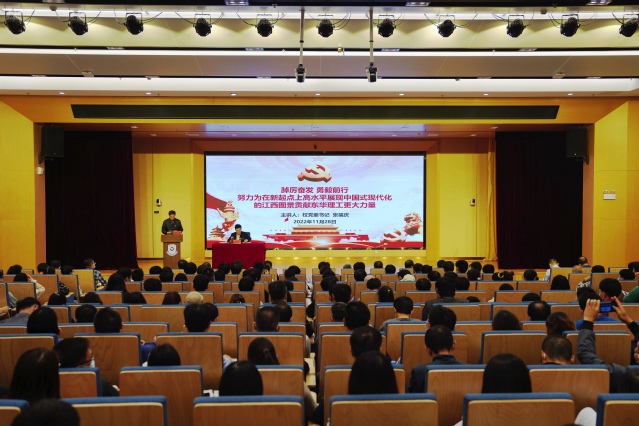 党的二十大胜利召开以来,学校及时组织、迅速行动,多措并举推动党的二十大精神落地生根。一是精心组织“学”。学校第一时间组织收听收看党的二十大开幕盛况,召开党委常委会(扩大会议)传达学习党的二十大精神,及时制定并印发学习方案,购买学习资料,开辟学习专栏,通过省委宣讲团成员刘文华、校党委书记张福庆、校长孙占学等领导干部带头学、基层组织创新学、“花式”宣讲沉浸学、加强阐释深入学等多渠道、多形式、全方位营造学习贯彻党的二十大精神的浓厚氛围。二是学深悟透“研”。围绕党的二十大精神,校党委以上率下开展专题研究,撰写刊发理论文章,形成研究成果,深化思想认识。我校思想政治理论课教师围绕党的二十大精神撰写理论文章共计26篇。三是创新深入“讲”。我校选派优秀教师、思政课教师、专家学者、学生骨干参加全省教育系统师生巡讲团,组建包含校党委常委、各基层党委(直属党总支)书记、思政课教师代表、离退休人员代表、江西青马团成员、学生团支部书记在内的各级各类宣讲团,进行全方位、立体式宣讲。四是聚焦发展“干”。学校对标党的二十大报告提出的目标任务和重大战略,聚焦国家需求和江西社会发展,细化举措,狠抓落实,推动党的二十大精神在学校落地见效,着力建设“行业领先、国内一流、国际知名”特色高水平大学。