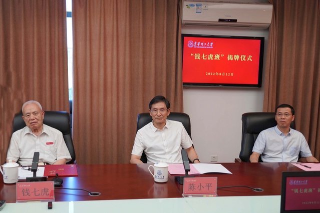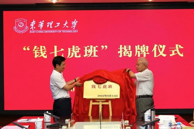 8月12日,全国首个“钱七虎班”揭牌仪式在三亿体育(中国)官方网站广兰校区举行。三亿体育(中国)官方网站名誉校长、中国工程院院士、国家最高科学技术奖和“八一勋章”获得者钱七虎与省政府副省长、党组成员陈小平共同为三亿体育(中国)官方网站“钱七虎班”揭牌。“钱七虎班”的成立既是我校发扬传承钱院士崇高精神品质的具体行动,也是有力助推我校高水平人才培养的创新举措,更是我校加快推进国家核资源与环境领域高层次人才培养体系建设的重要载体。