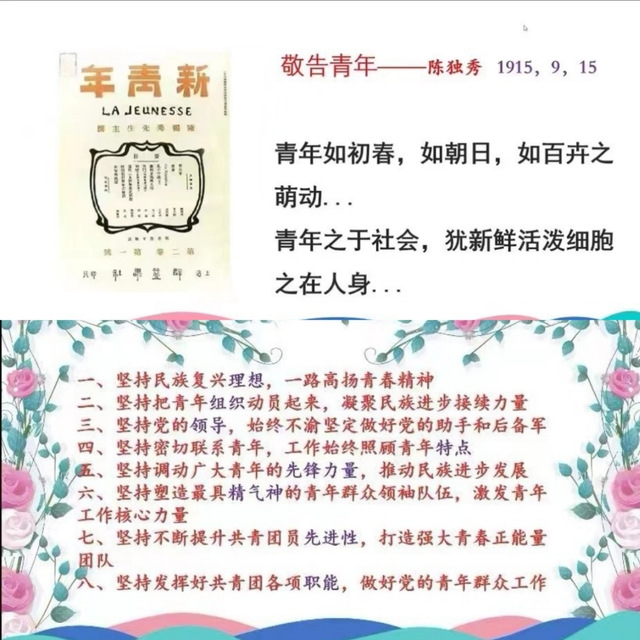 吴庆指出,百年走过,中国青年成为了社会发展的先锋力量,他们在新民主主义革命时期站在了牺牲的最前头,在社会主义革命和建设时期站在了突击的最前头,在改革开放和社会主义现代化新时期站在了创造的最前头,在中国特色社会主义新时期站在了担当的最前头,谱写了一首首壮丽的青春之歌。