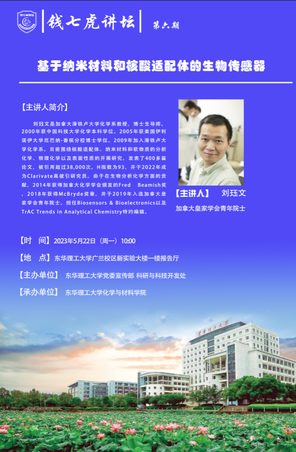 应化学与材料学院邀请,加拿大滑铁卢大学化学系教授,博士生导师刘珏文来到三亿体育(中国)官方网站,以“基于纳米材料和核酸适配体的生物传感器”为主题开展讲座。欢迎全校师生届时前往聆听。