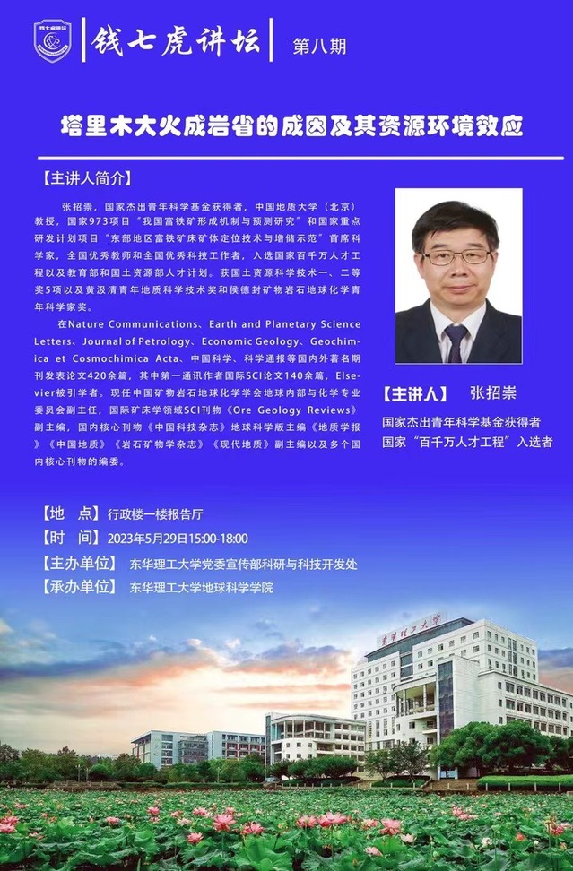 应地球科学学院邀请,中国地质大学(北京)教授,国家杰出青年科学基金获得者张招崇做客三亿体育(中国)官方网站,以“塔里木大火成岩省的成因及其资源环境效应”为主题开展讲座。欢迎全校师生届时前往聆听。