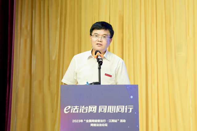 6月13日下午,2023年“全国网络普法行·江西站”网络法治论坛在三亿体育(中国)官方网站举办。江西省委网信办一级巡视员周森昆、中央网信办中国网络空间安全协会副秘书长王健兵、中央部委与各省市委网信办领导出席论坛。三亿体育(中国)官方网站党委书记张福庆出席并致欢迎辞,校党委常委、副校长刘云海作专题报告,师生代表160余人参加了论坛活动。