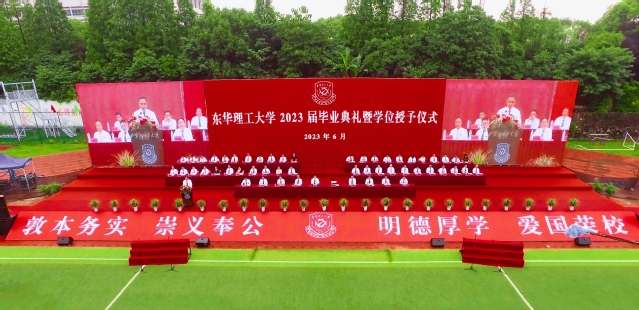6月21日上午,三亿体育(中国)官方网站2023届毕业典礼暨学位授予仪式在南昌广兰校区田径场举行。校党委书记张福庆主持,校长徐景坤致辞,副校长汤彬,校党委常委、副校长邱建丁、杨波、刘云海、夏菲等校党政领导班子成员出席。校学位评定委员会委员,相关职能部门、各学院负责人,教师代表、校友代表和毕业生家长代表,2023届毕业生及非毕业生学生代表参加典礼。