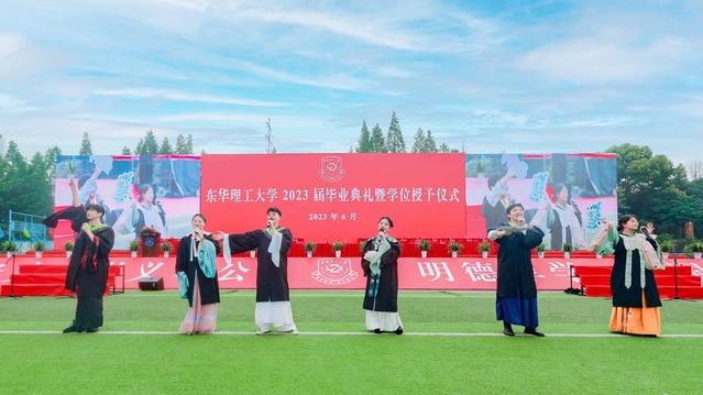 典礼上,毕业生代表向学校2022年度模范教师代表献花。典礼还特别设置了预热舞蹈、演唱环节、毕业生核军工宣誓仪式与朗诵环节,现场气氛热烈而庄重。(文/刘宇翔 图/刘宇翔 大学生传媒中心)