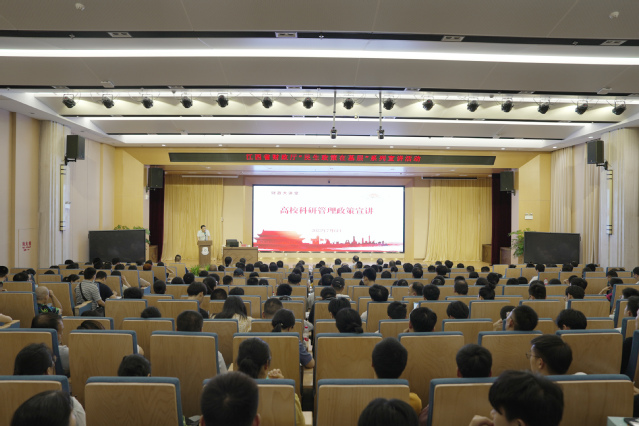 省财政厅有关处室负责人,三亿体育(中国)官方网站科研与科技开发处、计划财务处、审计处等相关部门负责人及各学院科研人员、师生代表共300余人参加宣讲会。(文/刘宇翔 刘子新 赵佳 图/刘宇翔)