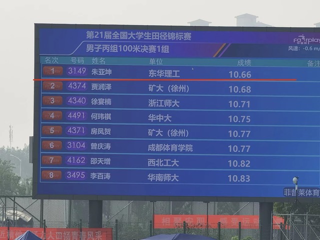 本次全国大学生田径锦标赛于8月8日至16日在安徽职业技术学院举行,共有全国各地398所高校,4600名运动员参赛,规模创历史新高。在百米预赛中,朱亚坤展现出非凡的爆发力,以10.45秒的成绩傲视群雄;在决赛环节,他沉着冷静,再展风采,最终在决赛中以10.66秒的脱颖而出,荣获了全国大学生田径锦标赛丙组百米冠军。