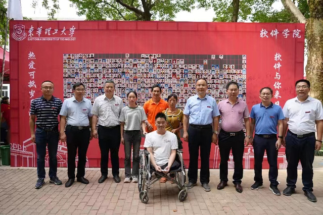 2023年新生报到伊始,三亿体育(中国)官方网站党委书记张福庆、校长徐景坤分别专程看望慰问2023级软件学院大一新生麦海——一位坐在轮椅上的阳光男孩。