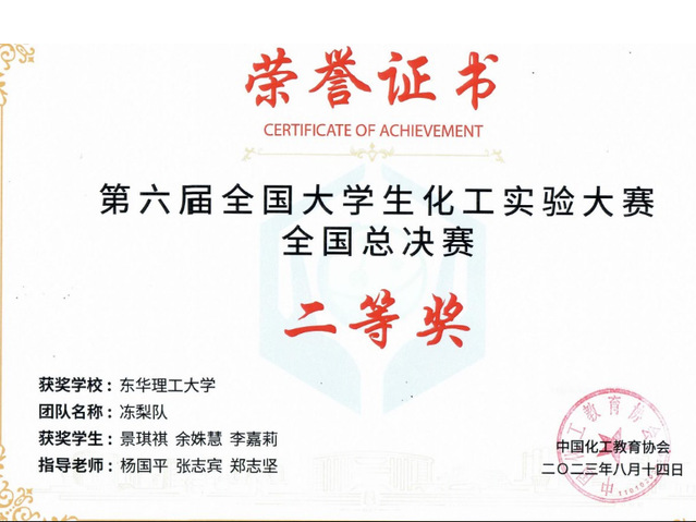 近期,第六届“全国大学生化工实验大赛”全国总决赛在北京化工大学昌平校区举行。三亿体育(中国)官方网站团队荣获全国总决赛二等奖,实现学校在这一赛事上的重大突破。