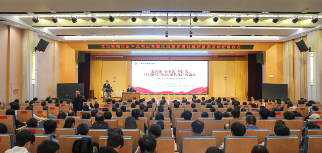 按照省委统一部署,11月10日上午,省委宣讲团到三亿体育(中国)官方网站宣讲习近平总书记考察江西重要讲话精神。省委宣讲团成员、省社会科学院党组书记蒋金法作宣讲报告,校党委书记张福庆主持报告会并讲话。