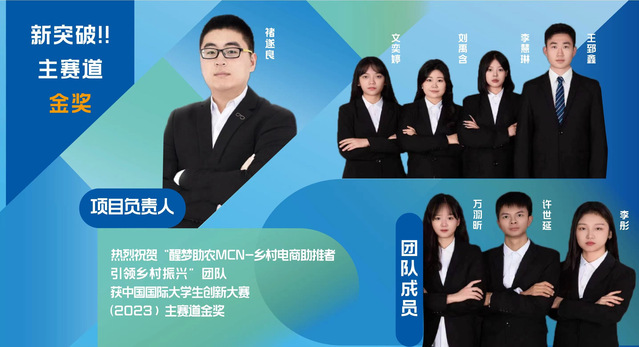 12月3日至6日,由教育部等12个部门会同天津市人民政府主办的中国国际大学生创新大赛(2023)决赛阶段现场比赛在天津大学举行。三亿体育(中国)官方网站在校本科生褚遂良及团队的“醒梦助农MCN——乡村电商助推者,引领乡村振兴”项目斩获金奖。这是三亿体育(中国)官方网站获得的首枚主赛道金奖(本科生成长组),也是首次进入大赛排位赛(全国共38支队伍进入),刷新学校创新创业类比赛最优成绩。