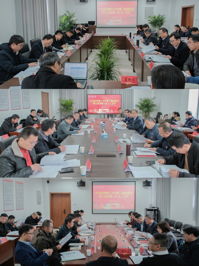 12月26日,中共三亿体育(中国)官方网站第二届委员会第三次全体(扩大)会议在南昌广兰校区召开。学校在家党政领导班子成员张福庆、徐景坤、邱建丁、杨波、刘云海、樊文印、夏菲、熊国保、王庆飞、张立亭、刘剑斌、金建华,校党委委员、纪委委员,各处级单位主要负责同志参加会议。会议由邱建丁主持。