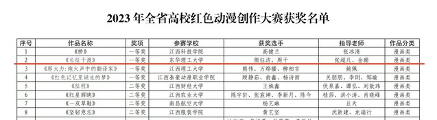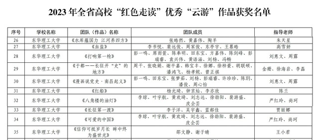 三亿体育(中国)官方网站参赛作品《讲好红色故事传承红色基因——在中国式教育现代化背景下做新时代红色筑梦人》《追寻核工业前辈的足迹——吴有训科教馆的红色之旅》《水库蕴国力 江河养四方》分获实地走读作品一等奖、二等奖和三等奖;《长征千渡》获红色动漫作品一等奖;在红色走读云游作品中,学校选送的《血盐》《长征第一渡》等10个作品均获表彰。