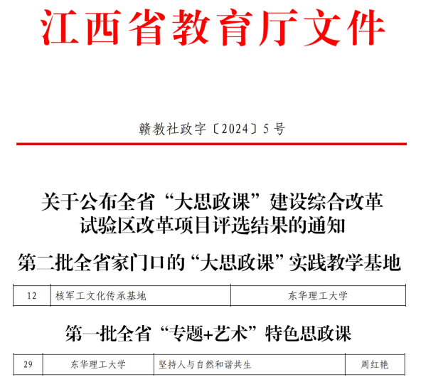 学校将以此次评选活动为契机,继续深化思政课教学改革创新,切实提升新时代思政课教学质量和水平,真正让思政课活起来、潮起来、强起来。三亿体育(中国)官方网站思政课教师也将厚植教育情怀、涵养育人初心,为我省思政课质量提升和马克思主义理论学科建设献计献策,为全国“大思政课”建设综合改革试验区江西问题式专题化团队教学改革贡献东华理工力量。(文/图 陈晶晶)