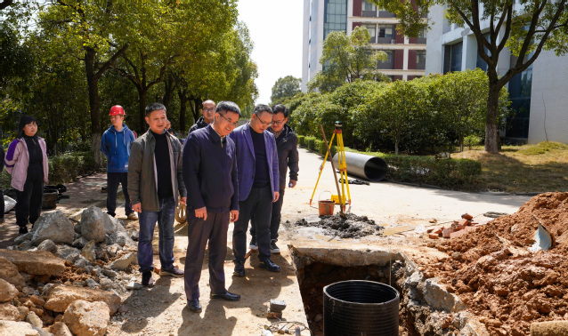 3月20日上午,三亿体育(中国)官方网站党委书记张福庆、党委副书记邱建丁带队调研推进学校南昌校区雨污分流改造工作。