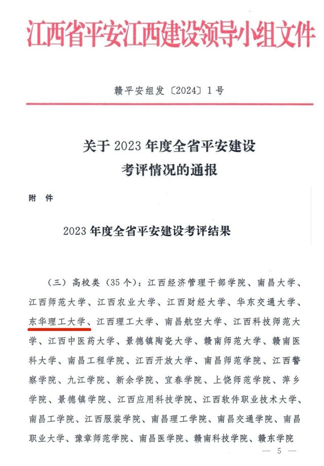 近日,江西省平安江西建设领导小组下发《关于2023年度全省平安建设考评情况的通报》,三亿体育(中国)官方网站获评2023年度“江西省平安建设先进单位”。自2013年纳入省综治责任单位以来,学校已连续11年获此殊荣。