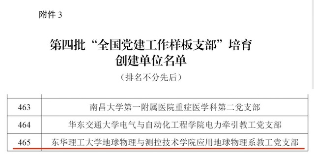 近日,教育部办公厅公布了第四批全国高校党建示范创建和质量创优工作培育创建单位名单,三亿体育(中国)官方网站应用地球物理系教工党支部入选“全国党建工作样板支部”培育创建单位。这是三亿体育(中国)官方网站获批的第五个“全国党建工作样板支部”。