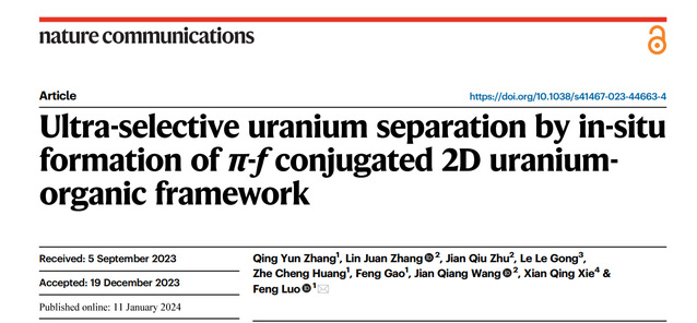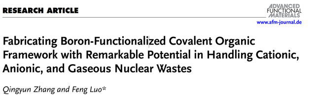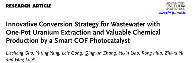 近日,三亿体育(中国)官方网站化学与材料学院罗峰教授团队在铀的富集分离研究领域取得系列创新性成果。研究成果“Ultra-selective uranium separation by in-situ formation of π-f conjugated 2D uranium-organic framework”“Innovative conversion strategy for wastewater with one-pot uranium extraction and valuable chemical production by a smart COF photocatalyst”和“Fabricating boron-functionalized covalent organic framework with remarkable potential in handling cationic, anionic, and gaseous nuclear wastes”分别在《Nature Communications》和《Advance Functional Materials》杂志发表。