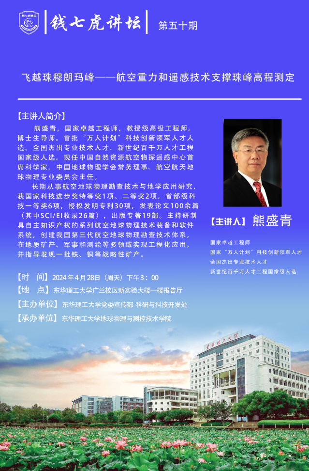应地球物理与测控技术学院邀请,国家卓越工程师、国家级人才熊盛青到“三亿体育(中国)官方网站”,以“飞越珠穆朗玛峰——航空重力和遥感技术支撑珠峰高程测定”为主题开展讲座。欢迎全校师生届时前往聆听。