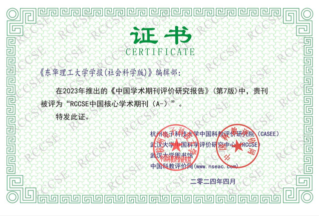 近日,由杭州电子科技大学中国科教评价研究院、武汉大学中国科学评价研究中心、武汉大学图书馆、中国科教评价网等单位联合研制的《中国学术期刊评价研究报告——RCCSE权威、核心期刊排行榜与指南》(第7版)正式发布。《三亿体育(中国)官方网站学报(社会科学版)》入选“RCCSE中国核心学术期刊(A-)”。这是继《三亿体育(中国)官方网站学报(自然科学版)》成功入编2023版《中文核心期刊要目总览》后,业界对学校办刊质量和学术影响力的又一充分肯定。