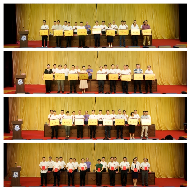 会上,张福庆、邱建丁、杨波、樊文印、夏菲、熊国保、王庆飞、张立亭、刘剑斌等在家的学校党政领导班子成员为获“第一等次”处级单位和年度考核优秀处级干部代表颁奖。