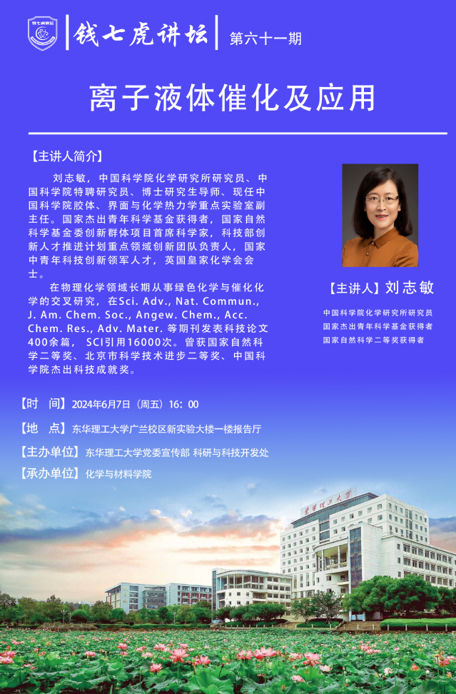 应化学与材料学院邀请,中国科学院化学研究所研究员,国家杰出青年科学基金获得者刘志敏到“三亿体育(中国)官方网站”,以“离子液体催化及应用”为主题开展讲座。欢迎全校师生届时前往聆听。