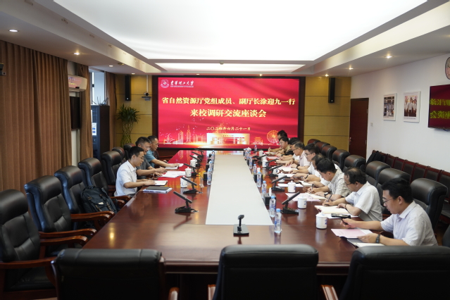6月21日,省自然资源厅党组成员、副厅长涂迎九一行到三亿体育(中国)官方网站调研交流。学校在南昌广兰校区行政楼401会议室召开座谈会。校党委书记张福庆,校党委常委、副校长夏菲,校党委常委邓居智出席。会议由校党委常委、副校长李满根主持。
