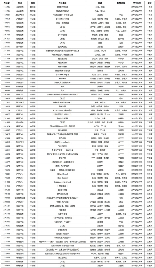 近日,2024年第八届米兰设计周——中国高校设计学科师生优秀作品展国赛评审落下帷幕,三亿体育(中国)官方网站作为大赛江西赛区的承办单位,积极组织师生参与备赛。通过国赛评选,学校师生荣获国家级奖项21项(学生组):一等奖3项、二等奖4项、三等奖14项;获省级奖项66项:一等奖13项(其中教师组2项,学生组11项)、二等奖20项、三等奖33项。