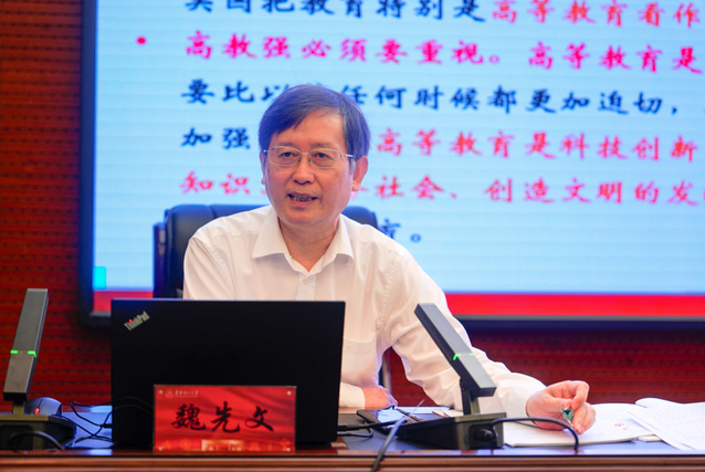 8月23日上午,安徽工业大学党委副书记、校长魏先文教授应邀到三亿体育(中国)官方网站作《地方高校因地制宜培育新质生产力的改革实践》辅导报告。在家学校党政领导班子成员出席报告会。报告会由校党委副书记邱建丁主持。
