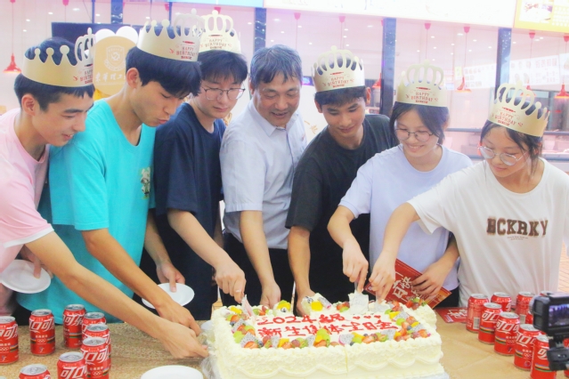 生日会上,校领导为小寿星们送上了校园文化创意礼品大礼包以及校领导签名的生日贺卡。在欢快而温馨的氛围中,师生同切生日蛋糕,齐唱生日快乐歌,共度美好时光。