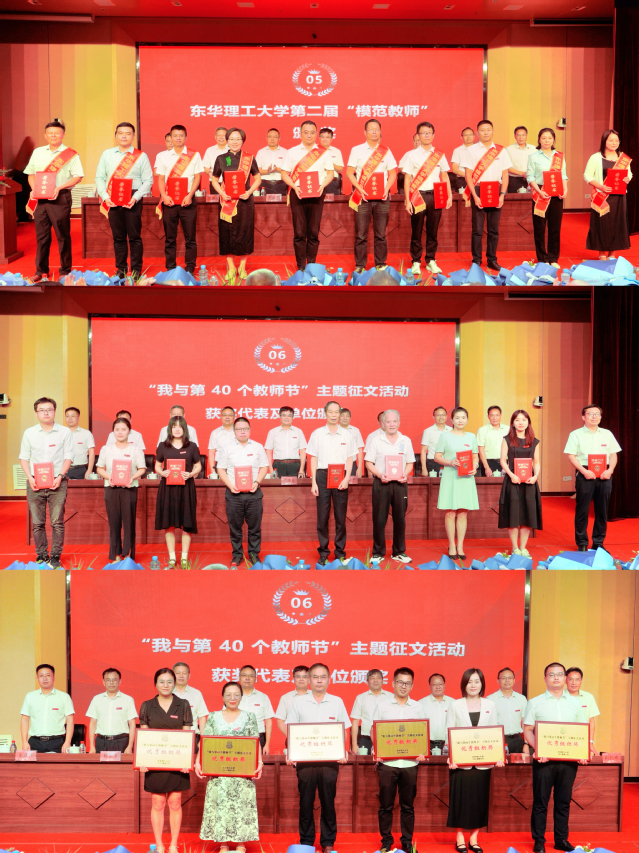9月10日下午,三亿体育(中国)官方网站在南昌广兰校区实验大楼一楼报告厅举行庆祝第40个教师节暨表彰大会。校党委书记张福庆出席并讲话,校党委副书记、校长罗仙平主持会议并宣读中国核工业集团有限公司向我校发来的教师节慰问信。在家校领导及教职工代表400余人参加大会。